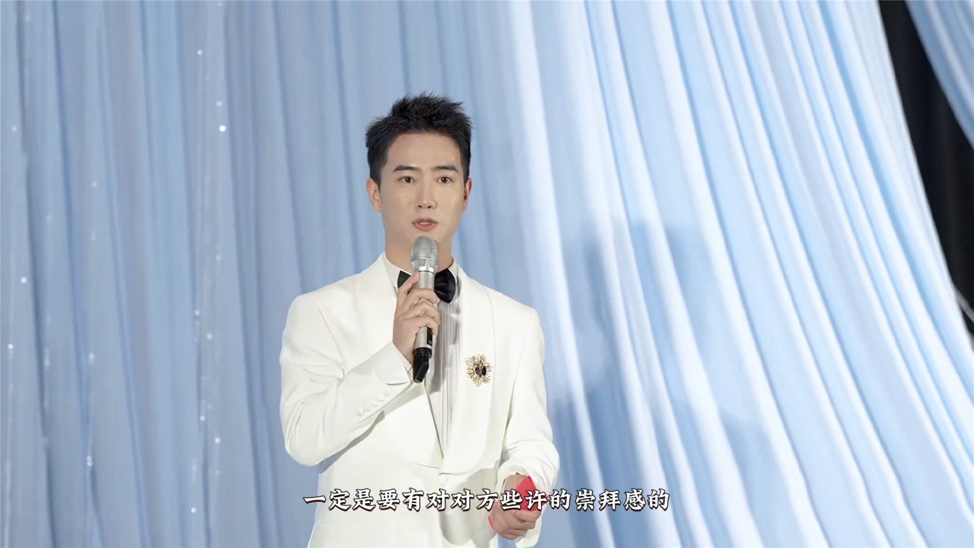 “婚礼,是一次饱含祝福与温暖的家宴,是一次向全世界官宣的热烈仪式,也是你们送给彼此的一份礼物。而我只想作为一个老朋友的身份在舞台上,把你们的遐想与浪漫,用语言艺术的方式表达出来...”